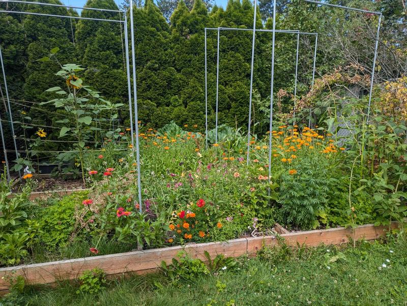 I would also still like a drip watering system, which might help especially in the later season September, October preventing powdery mildew, which shows up everywhere. We also didn't get the grape trellis or grapes in along the fence by the new garden beds, so that's a spring project, too. I have a spot in mind for a few blueberry and lingonberry bushes; I want ot put in more bulbs and other flowers; there's always more!