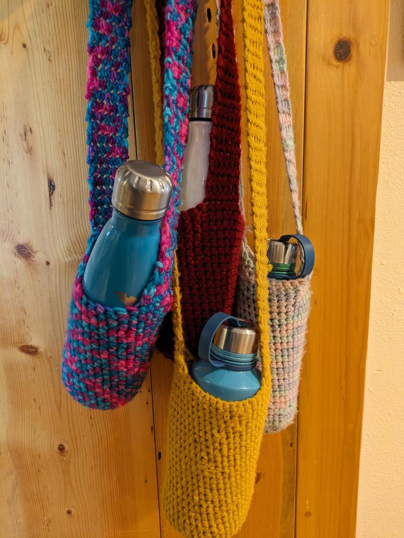 One of my first crochet projects was a simple water bottle holder. A classic Waldorf school project, it's useful for carrying a water bottle on short hikes or walks.